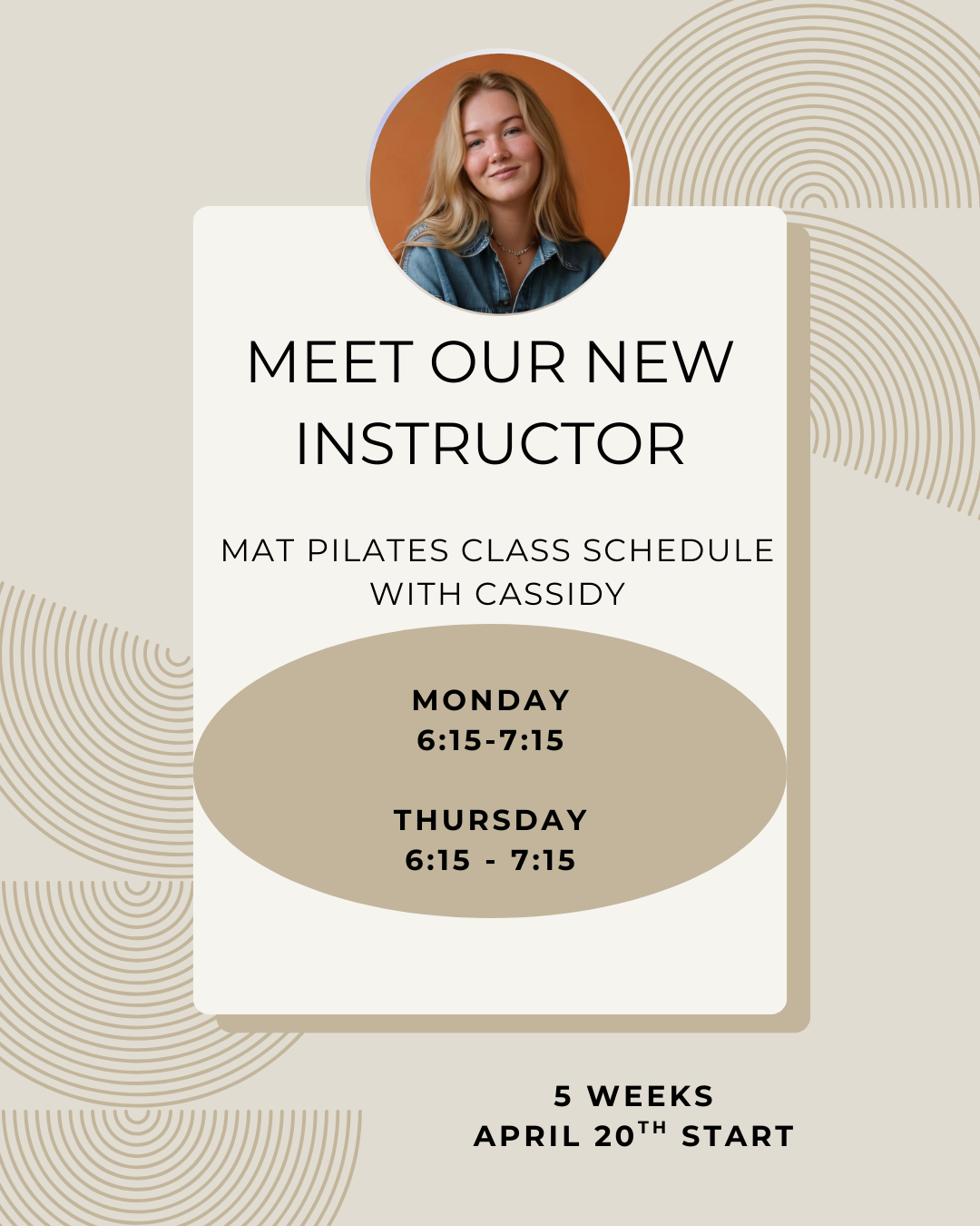 Move, strengthen, and reset this spring with our 5-week Mat Pilates series led by new instructor Cassidy. Cassidy brings her background in yoga, Pilates, musculoskeletal anatomy, and therapeutic exercise, along with genuine care and excitement for movement. Expect a low-impact, core-focused class that improves strength, posture, and flexibility in a welcoming, feel-good environment. All levels welcome.