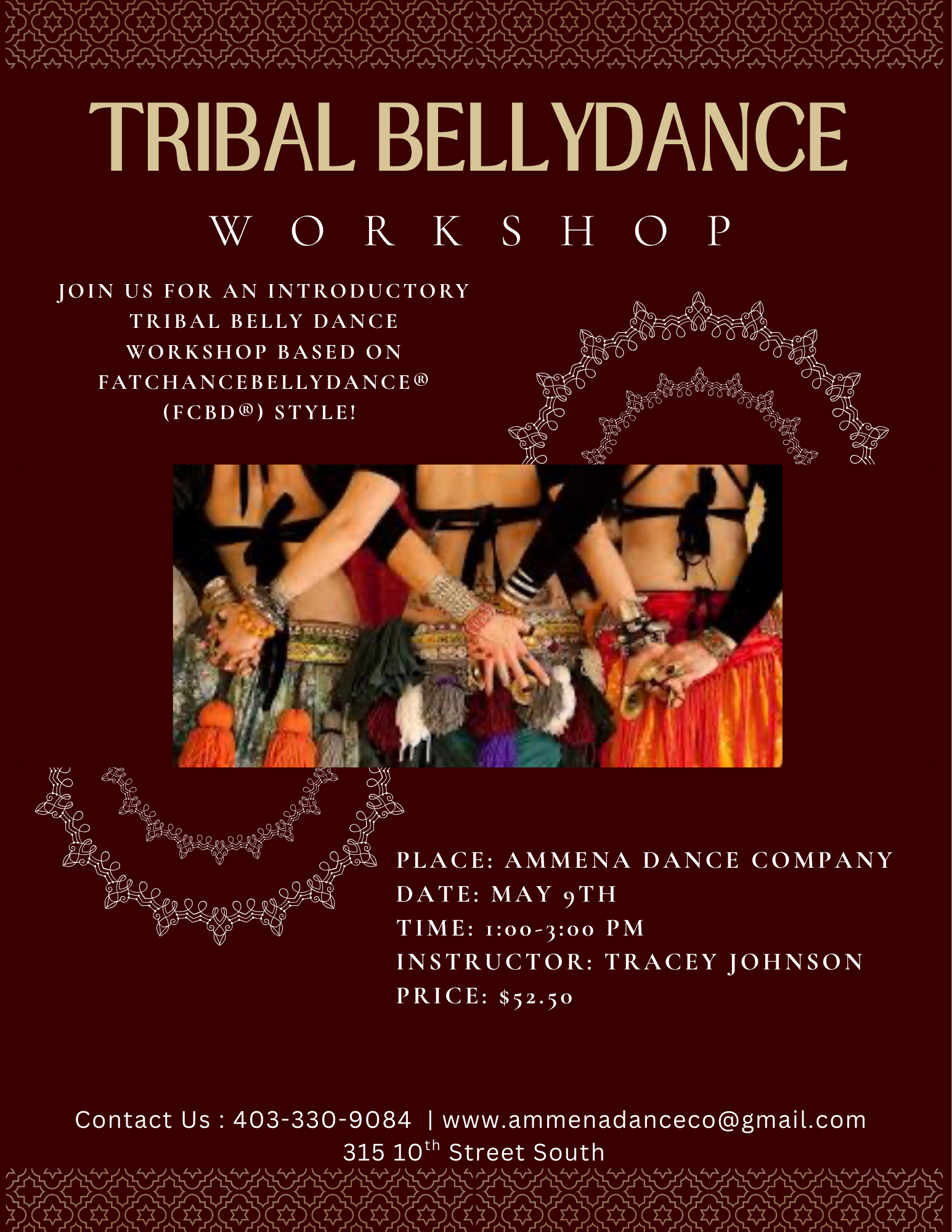 Join us for an introductory Tribal Belly Dance workshop based on FatChanceBellyDance® (FCBD®) Style! This variation of belly dance focuses on a modern group-improvisational style by utilizing a shared vocabulary of steps and cues. Whether you're brand new to belly dance or an experienced dancer, this workshop will guide you through the foundational FatChance® Style movements, group formations, simple combos, strong postures, zils, and drills! Build confidence and step into your goddess power by building connections through this afternoon of movement and sisterhood!